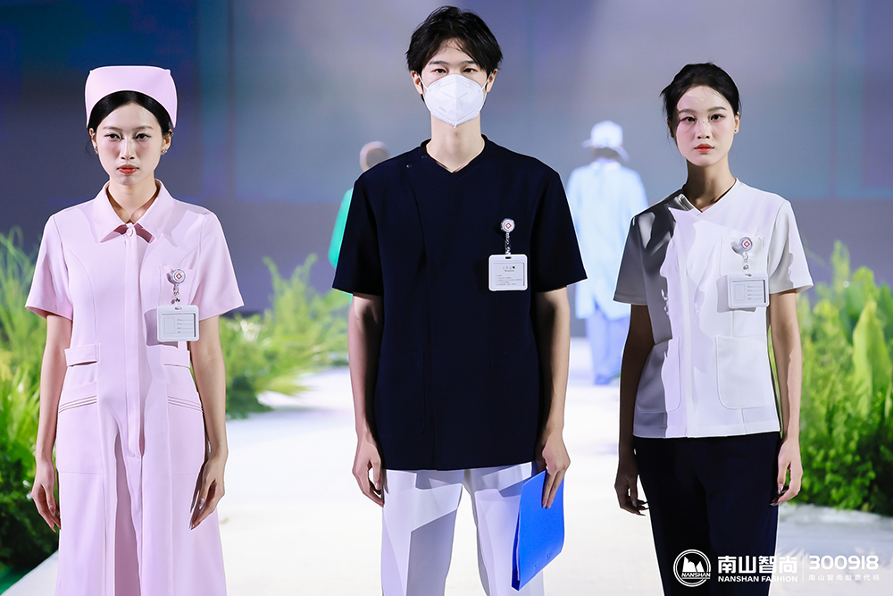 秀場上,一系列融合了高科技面料與時尚元素的職業裝驚艷亮相。南山智尚巧妙地將傳統職業裝的經典與現代審美相結合,通過獨特的設計語言,彰顯穿著者的個性風采和專業態度。從金融行業的專業嚴謹到建筑行業的粗獷實用,既保留了職業裝的專業嚴謹,又不失時尚感與個性化表達,滿足了不同行業、不同崗位對于職業裝的多樣化需求。